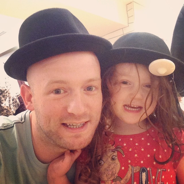 Little Miss GB and I checking out hats (at Dorothy Perkins)