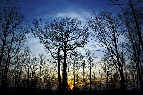 The sun setting through the tree on the outskirts of Paris. Taken on my resent trip to France.