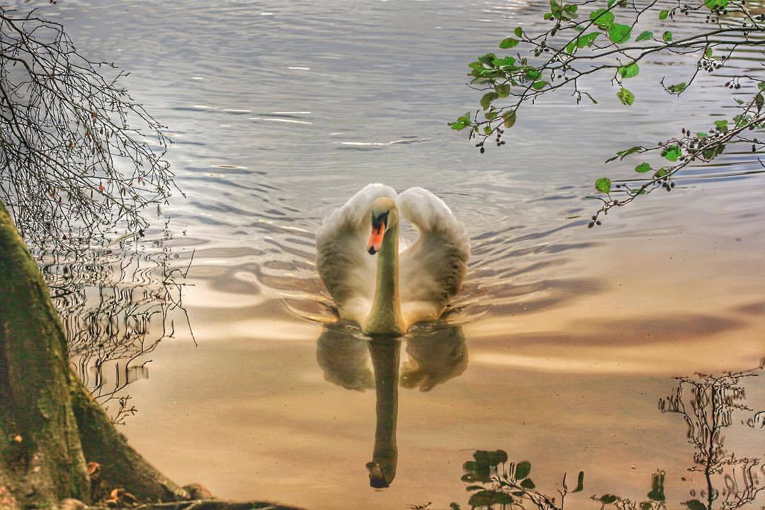 Sunset Swan on Bolam Lake #sunset #swan #northmberland (at Bolam Lake Country Park)
